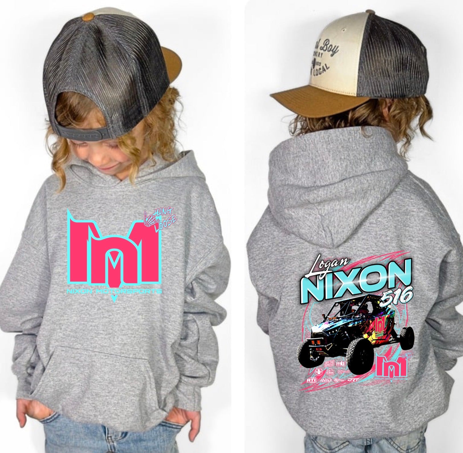 Kids race merch grey hoodie